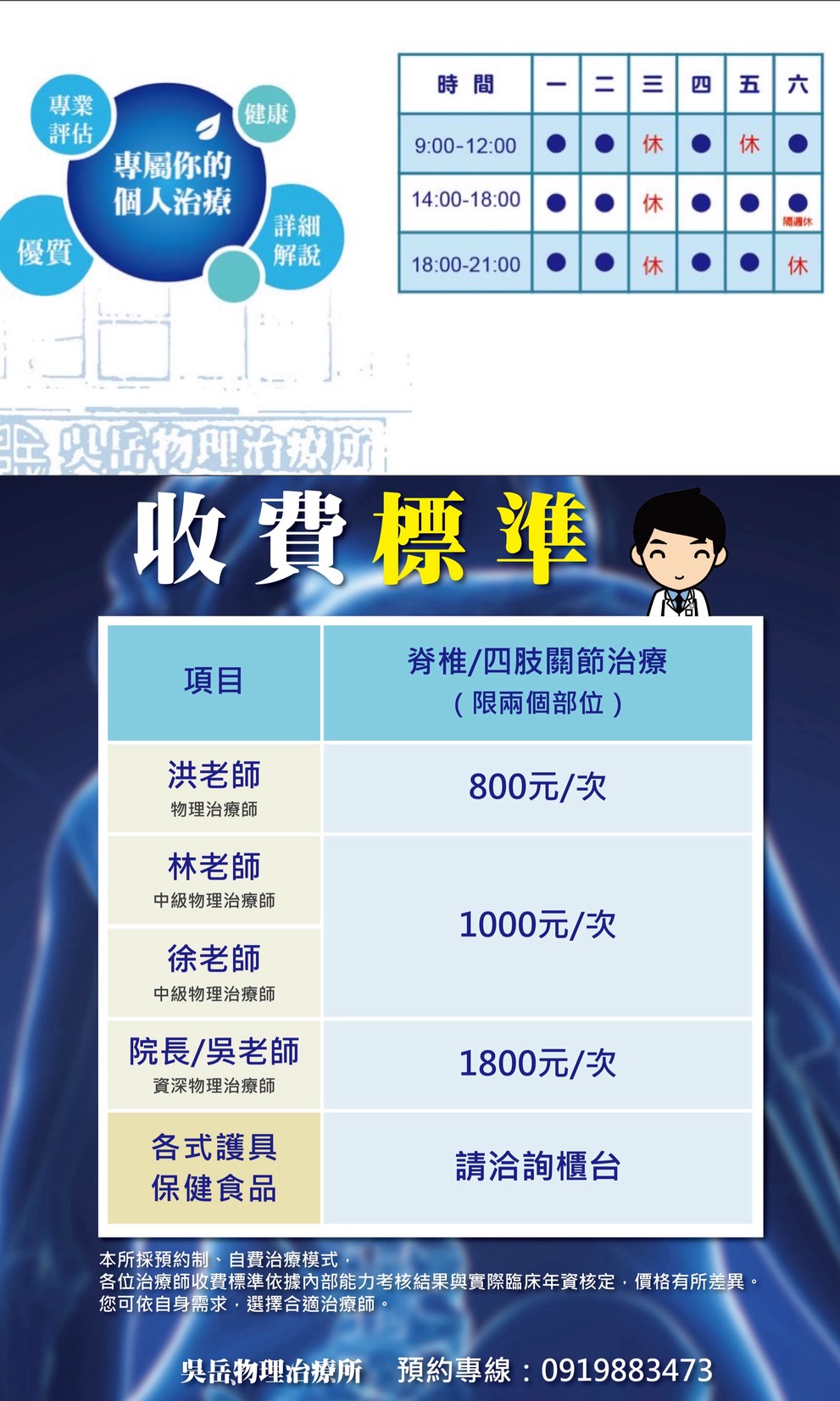 治療時段&收費標準